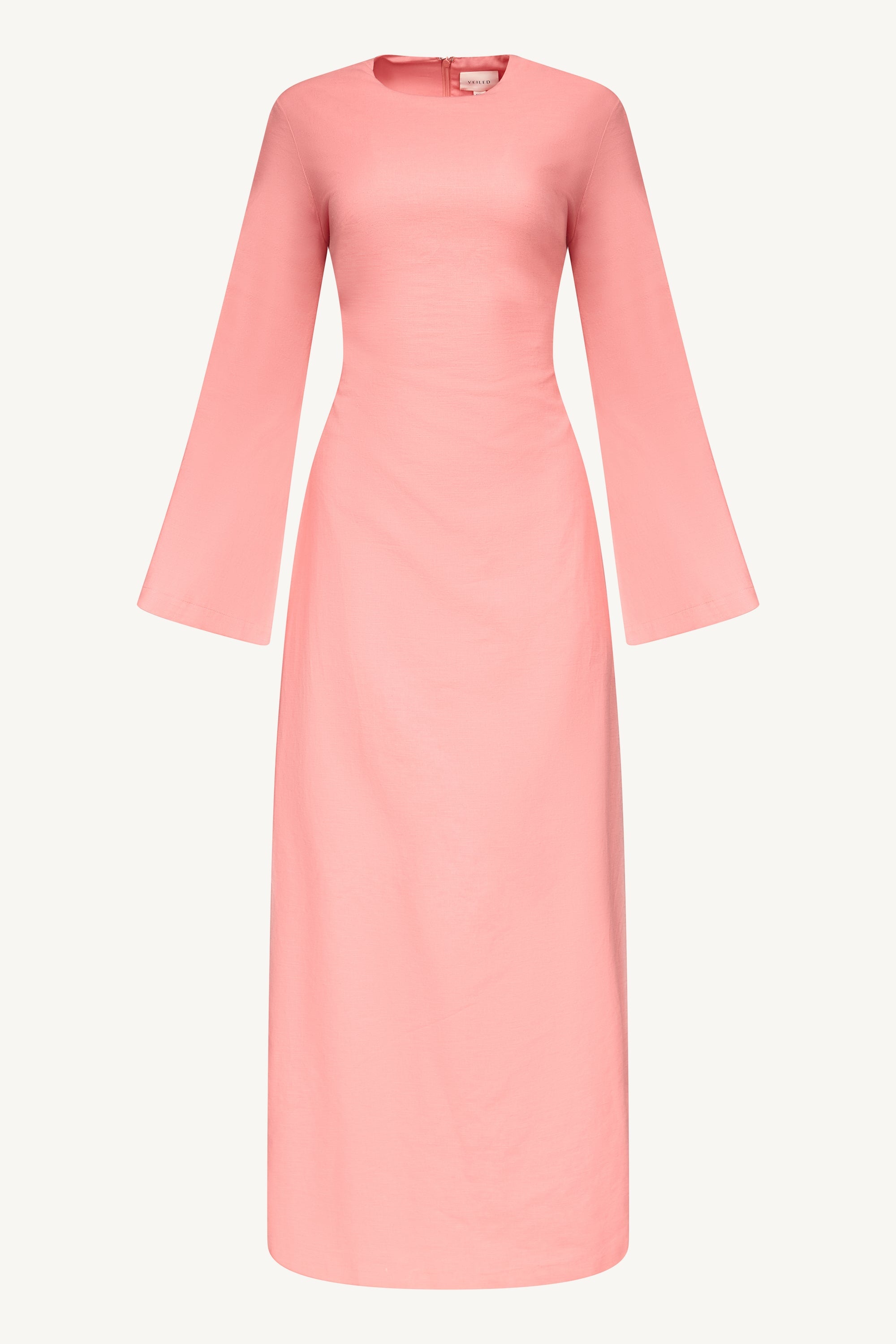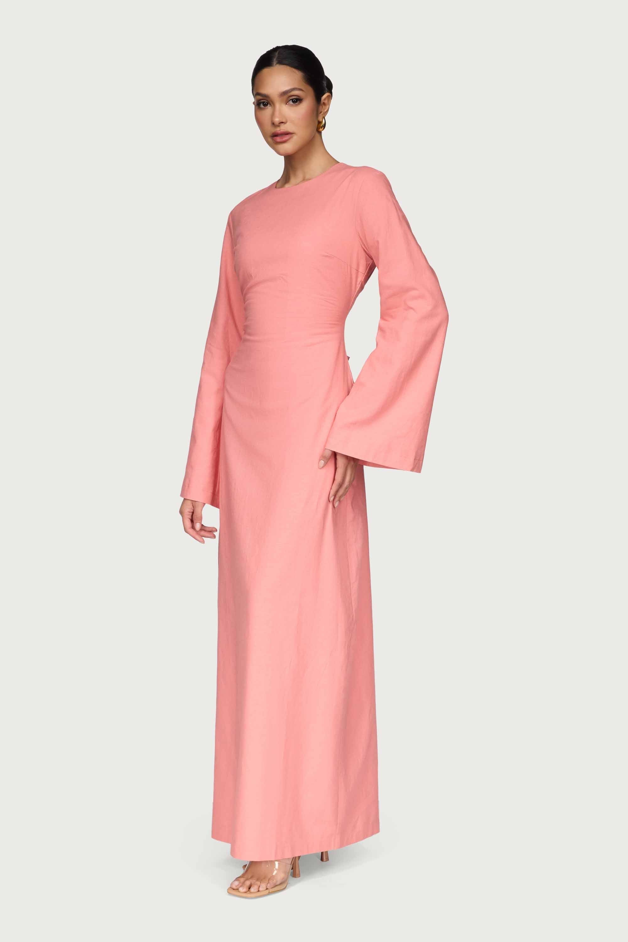 Indulge in luxury with our Cotton Linen Lace Up Back Maxi Dress in Summer Coral. Made from a breezy and comfortable cotton linen blend, this dress exudes elegance and elevated style. The understated design is versatile for any occasion, while the lace up back and flare sleeves add a touch of sophistication and charm. Experience true sophistication with this exclusive piece.