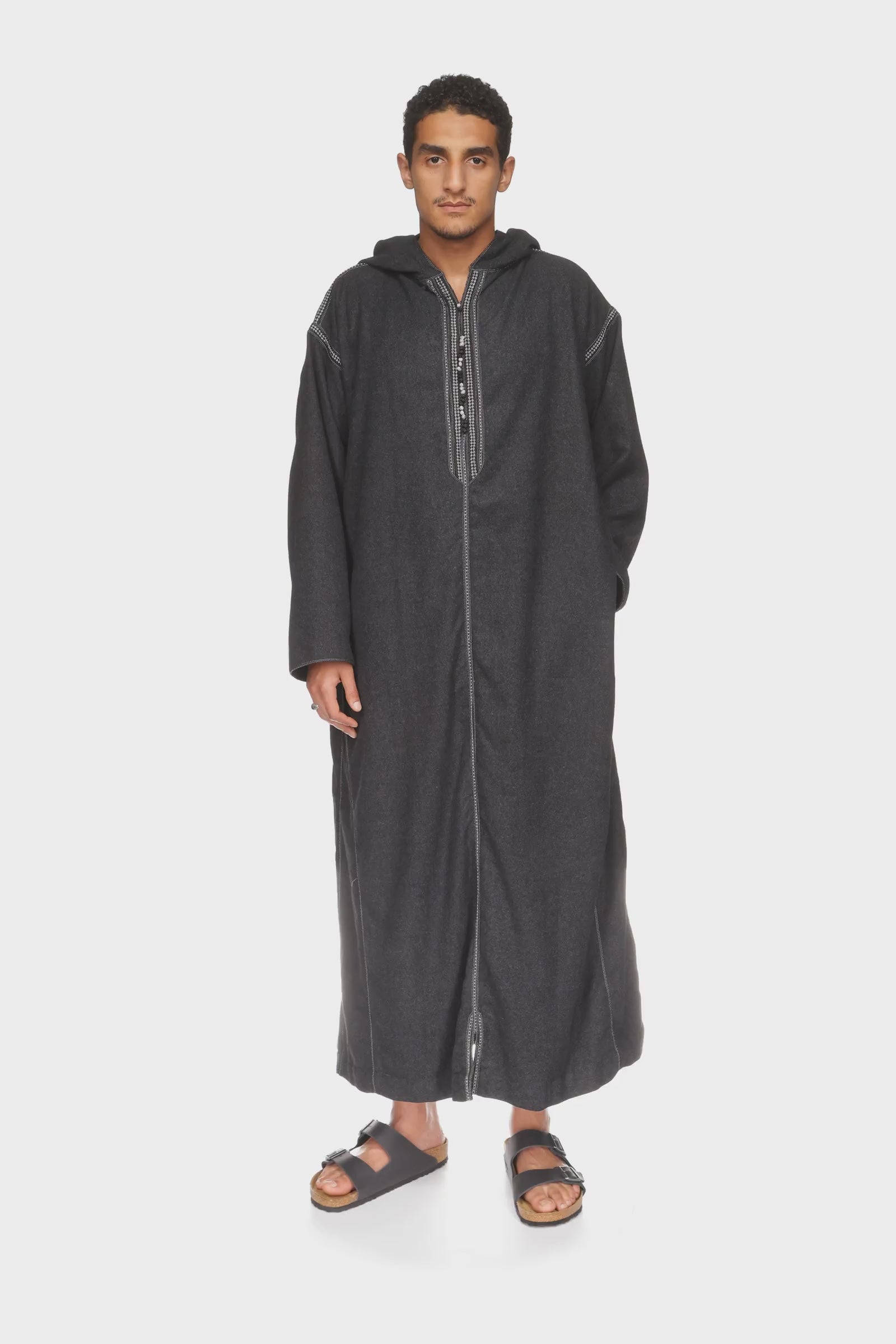 Exquisitely handcrafted using time-honored Moroccan techniques, our Liverpool Hooded Thobe in Dark Grey represents tradition elegantly reimagined. The sumptuous felted texture provides unparalleled comfort against the skin, while the sophisticated hood element introduces a contemporary aesthetic. This distinguished garment honors cultural heritage while embracing your everyday look—a refined statement piece for the discerning gentleman.