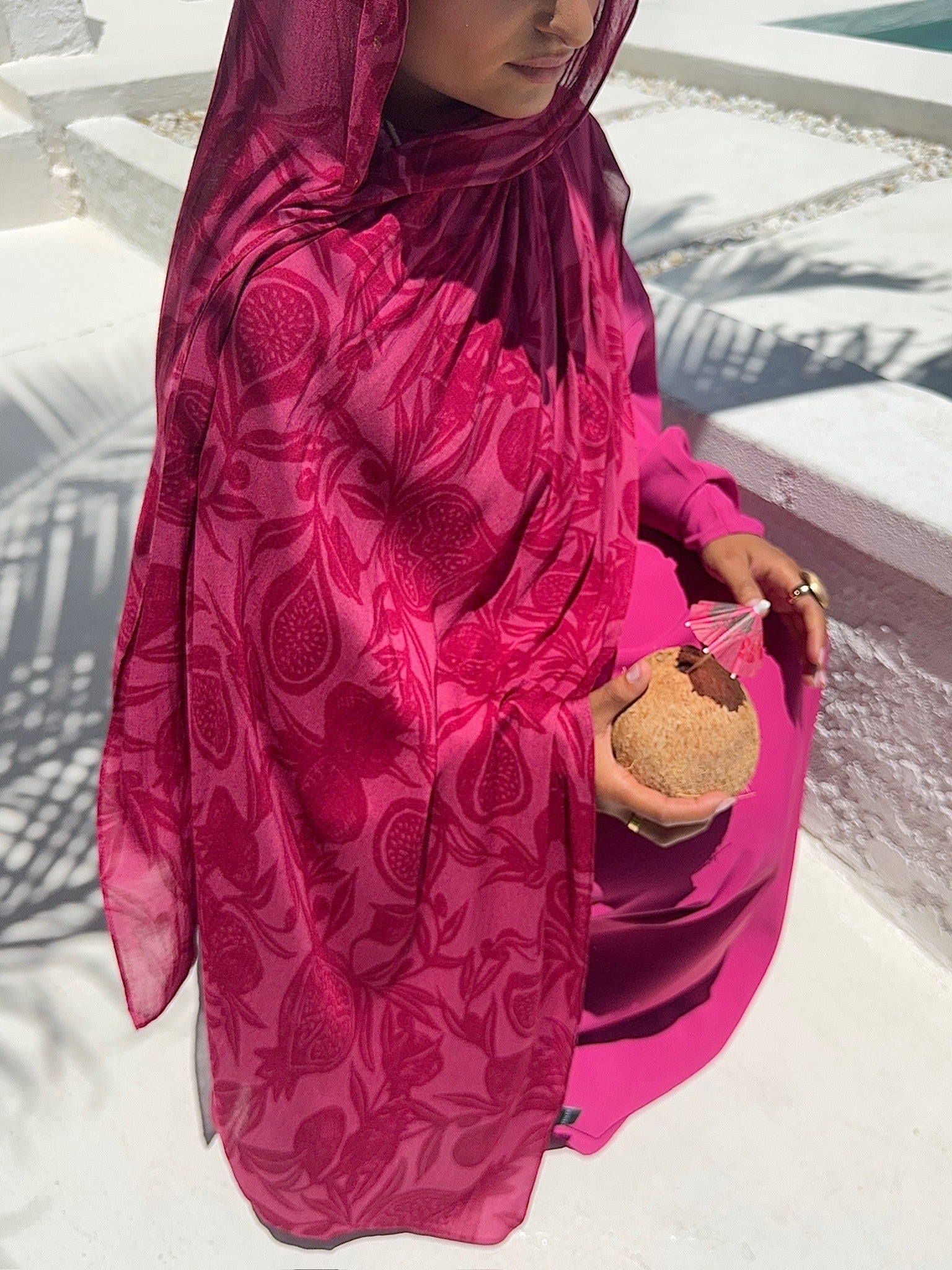 Discover Paradise Garden, designed by @alishbahmasood. Alishbah's design, 'Paradise Gardens,' is inspired by the fig, olive, and pomegranate—fruits of paradise mentioned in the Quran—symbolizing sabr and divine promise. This piece is a gentle reminder of what is waiting for us in the next life, and the beauty that blooms through patience and faith.