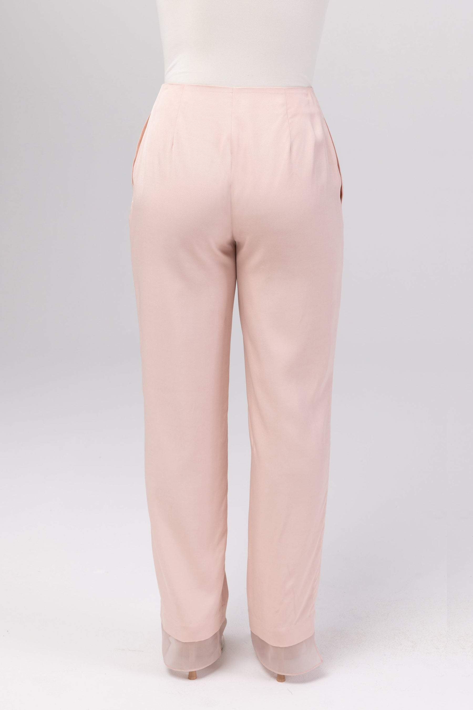 The Rayan pants feature a flattering high rise, an organza trim along the hem and a breathable viscose-blend fabric. Take your style to new heights with our Rayan Organza Trim Trousers. The high-rise design flatters your figure while the delicate organza trim adds a touch of refinement. And with our breathable viscose-blend fabric, you'll feel comfortable and luxurious all day long. Elevate your wardrobe with these exquisite trousers.