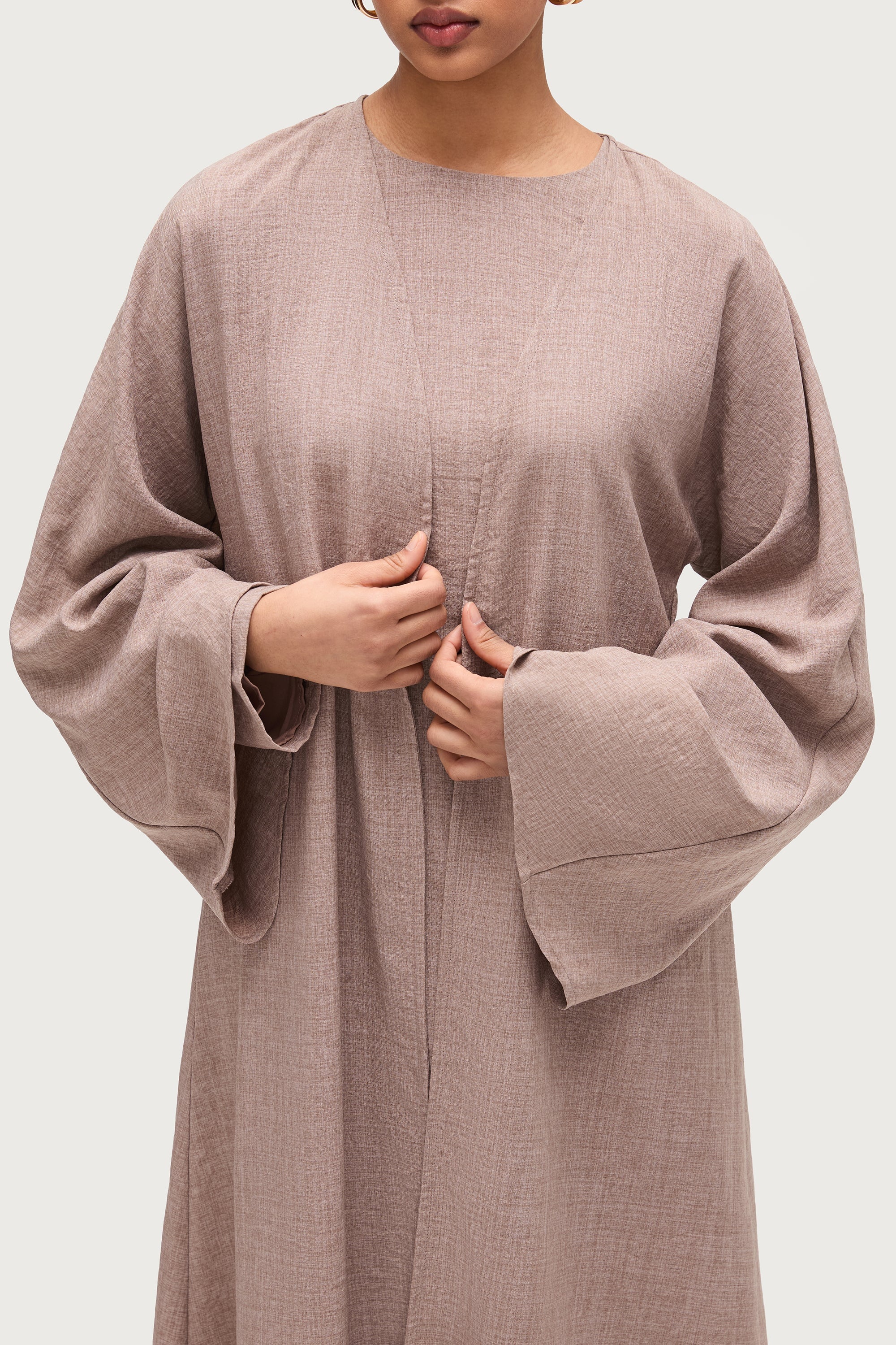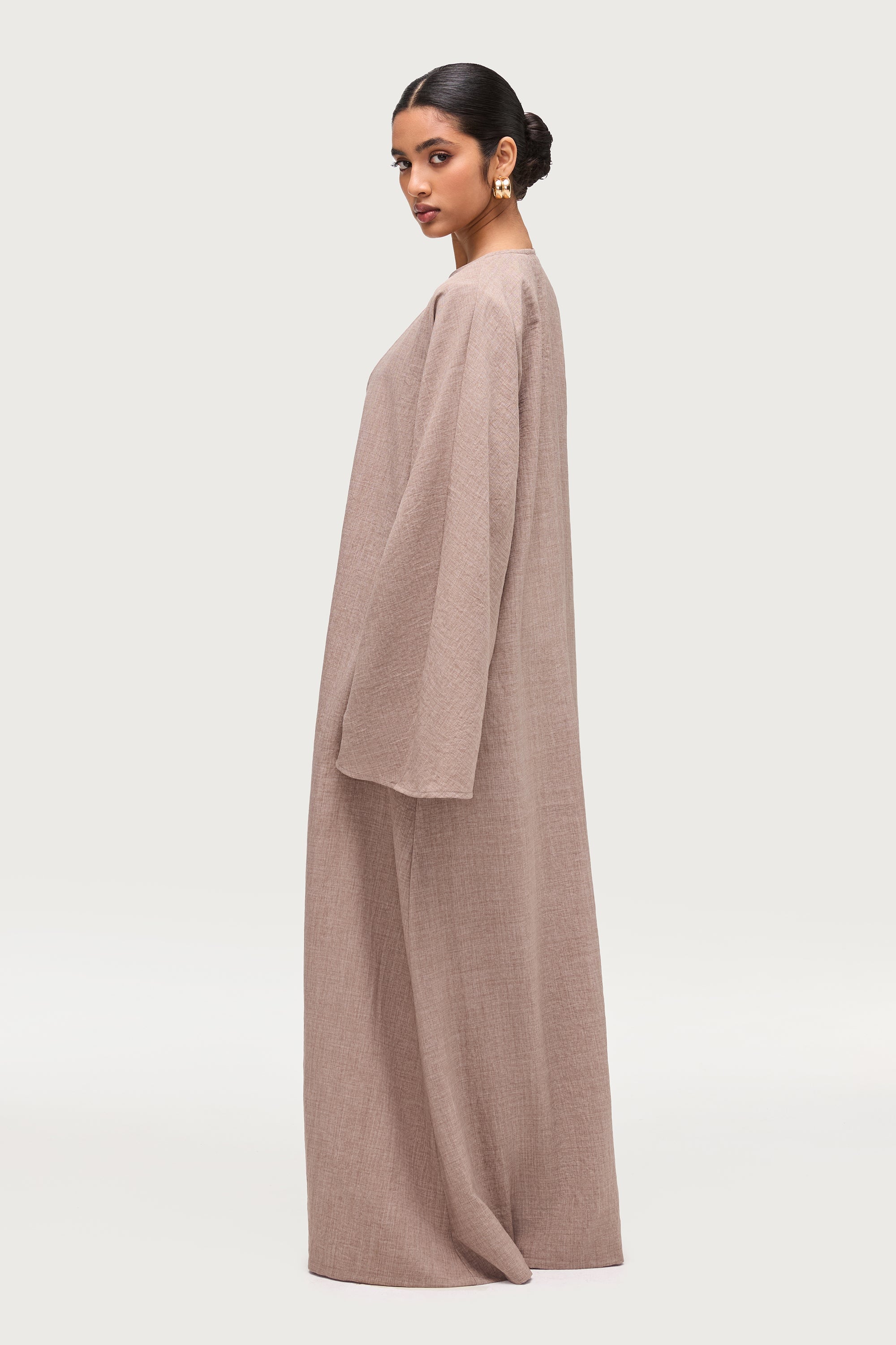 Embrace elegance and comfort with our Sana Maxi Cardigan in Truffle. This everyday piece features wide sleeves and a flowy fit, draping effortlessly for a flattering silhouette. Crafted from a textured fabric, this cardigan adds both style and sophistication to any outfit.