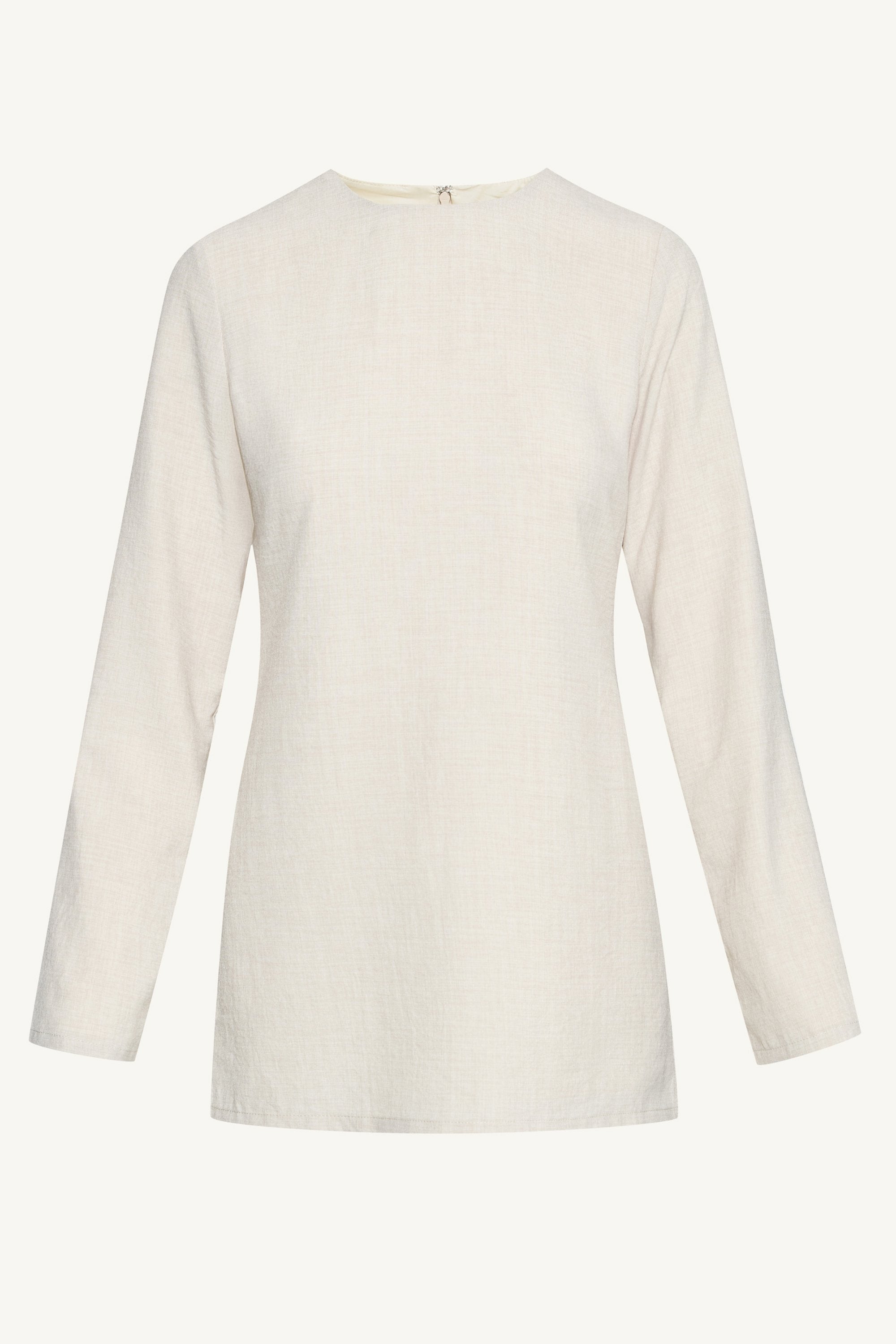 Indulge in understated luxury with our Sana Side Slit Relaxed Top in Oatmeal. Designed with a versatile and elevated style, this top features a relaxed fit and a side slit for added comfort and sophistication. Perfect for dressing up or down, it's a must-have in any wardrobe.